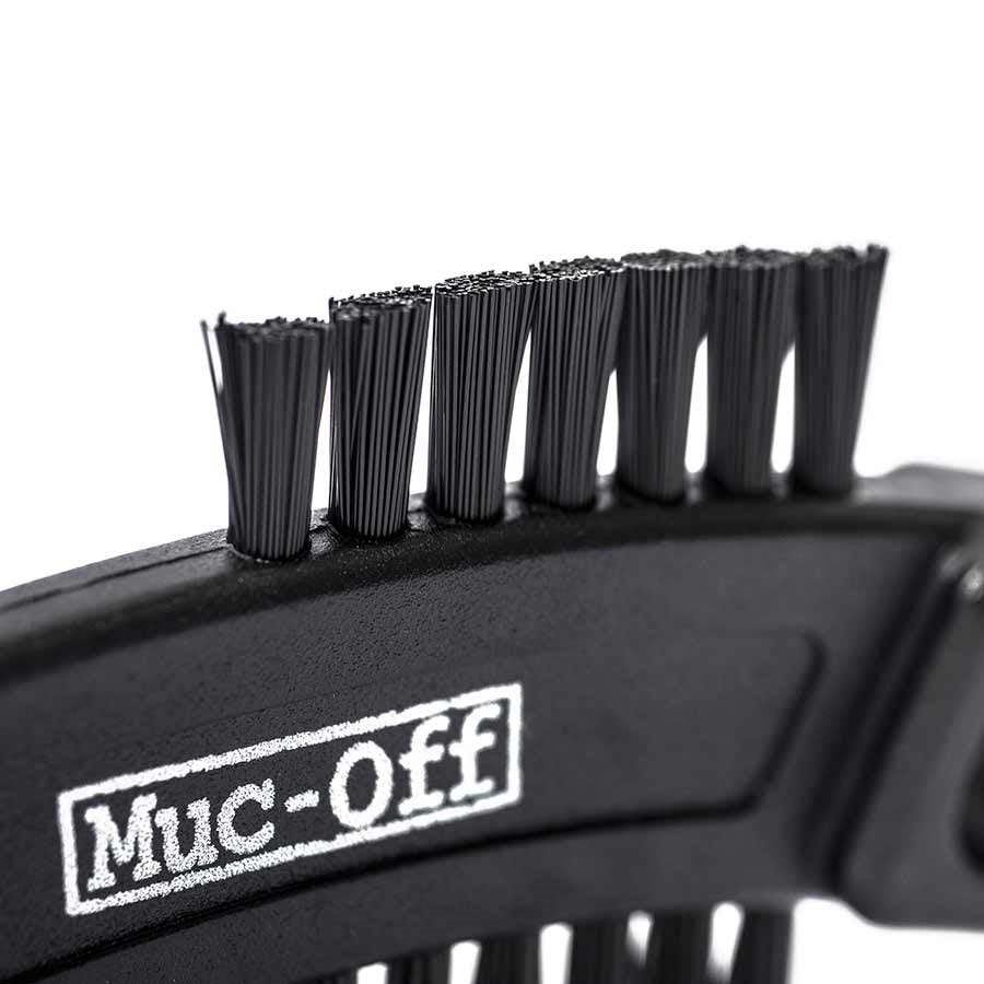 La brosse à griffes Muc-Off bénéficie d'une construction de haute qualité avec trois têtes de brosse dotées de poils en nylon résistants et d'un grattoir intégré pour le débouchage de la boue. Il est parfait pour nettoyer la chaîne, la cassette, les mécanismes et les pignons de votre vélo.