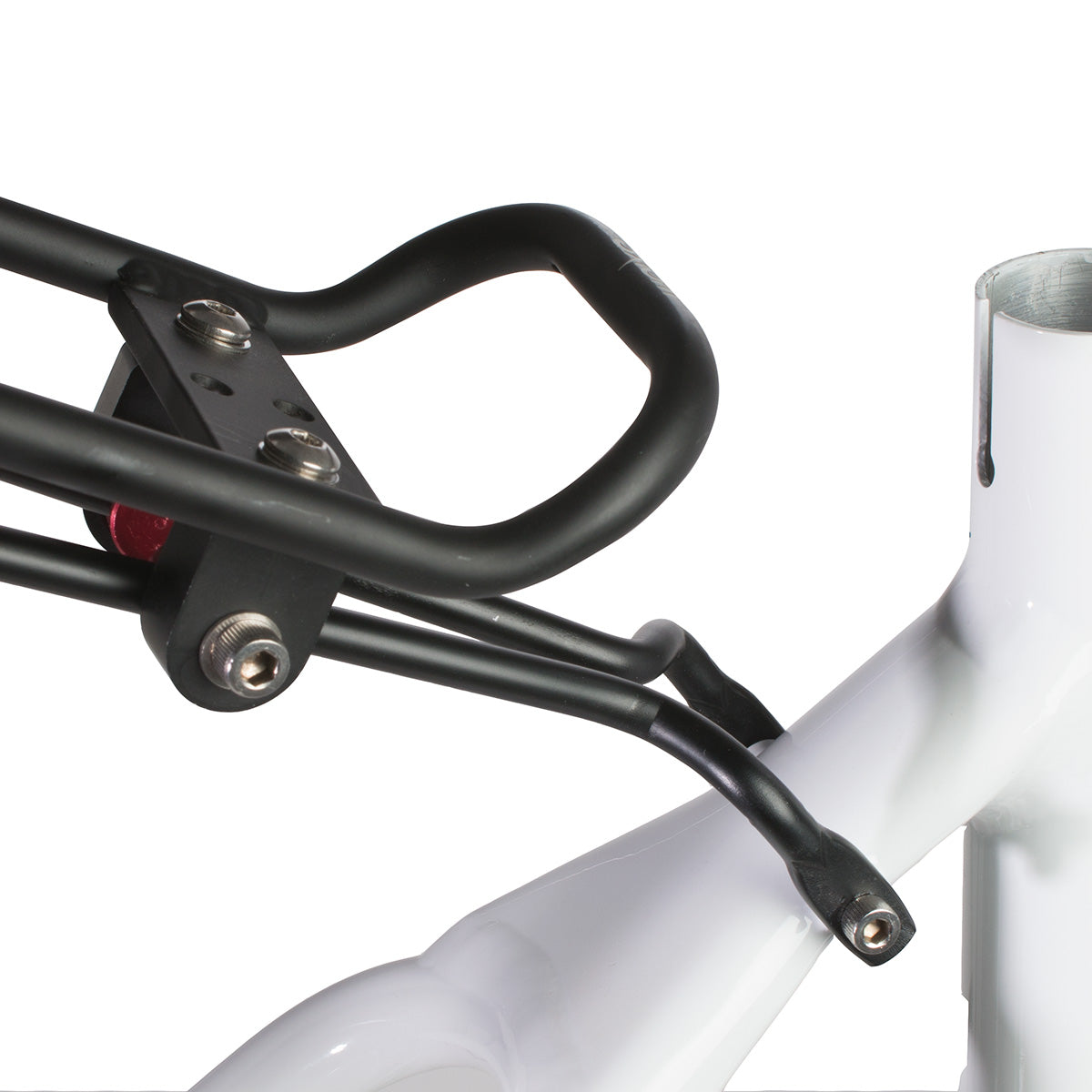 - Un collier de tige de selle Trekk (non inclus) peut être utilisé en option pour ajouter des oeillets supérieurs à des vélos qui n’en ont pas.
